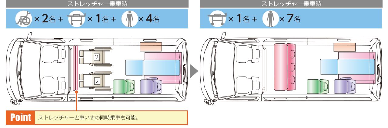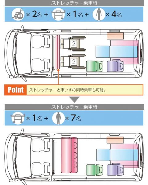 介護タクシー ハイエーススーパーロングワイド座席レイアウト